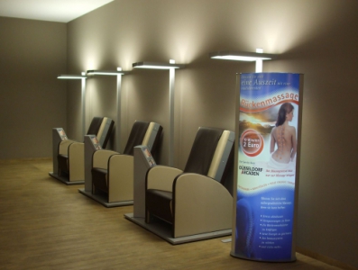 für die vielfältigen Möglichkeiten, Wellness-Massagesessel zu platzieren. Ob 2er-Gruppe, 4er-Gruppe, 6er-Gruppe, 8er-Gruppe oder mehr - alles ist möglich. Ebenso lässt die farbliche Auswahl und deren Zusammenstellung (fast) keine Wünsche offen.